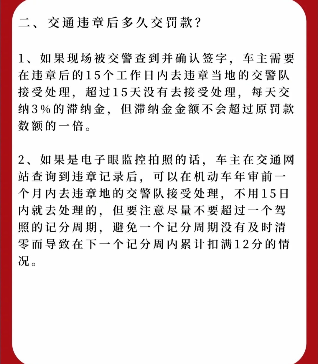 收到违章短信多久交罚款收到违章短信后应立即查看具体内容,一般需在15日内完成罚款缴纳。建议尽快处理,避免额外费用或影响车辆年审等。不同地区的处理流程和规定可能有所不同,请以当地交警部门通知为准。... 2025-09-05 - [阅读全文]